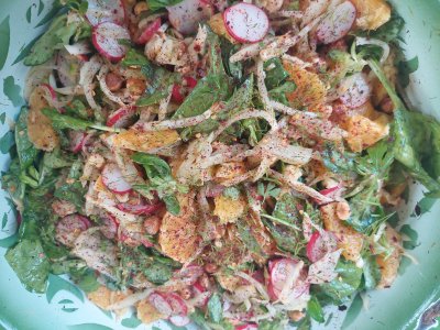 Zomerse salade geroosterde venkel, sinaasappel en hazelnoten