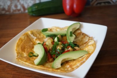 Groenteomelet met courgette, champignons, paprika, avocado en bieslook