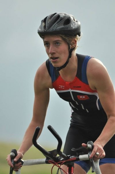 Ik ging voortvarend van start met hardlopen en liep op mijn vertrouwde wedstrijdtempo. Het voelde nog alsof ik de hele wereld aankon, maar toen! Het meisje die mij op de fietsen had ingehaald kwam maar tergend langzaam in mijn vizier en opeens voelde ik het: loodzware en verzuurde benen, misselijk, een weeïg gevoel in mijn maag, HONGERKLOP. Dat werd afzien tot de finish waarbij ik nauwelijks meer kon versnellen.Uiteindelijk moest ik genoegen nemen met een 14e plaats en stond ik flinke tijd bij te tanken bij de verzorgingspost: sportdrank, sinaasappelpartjes, bananen, winegums, al het suiker had ik nodig om mij weer een beetje op te lappen. Niet leuk, wel leerzaam!