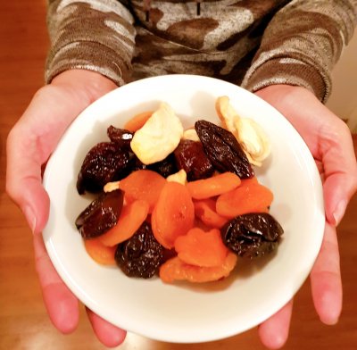 Ik adviseer om gedroogd fruit af te wisselen met vers fruit. Zo kan je optimaal profiteren van alle vitaminen, mineralen, antioxidanten en vezels uit zowel gedroogd als vers fruit. Je kan bijvoorbeeld wat gedroogd fruit (liefst zónder toegevoegde suikers) door je yoghurt, kwark of havermoutpap doen of een handje gedroogd fruit (eventueel gemengd met noten) als tussendoortje nemen. Gedroogd fruit kan ook goed als ‘zoetje’ door een salade of warm gerecht (denk aan gedroogde pruimen voor in een Marokkaanse Tajine). Ook kan je gedroogd fruit als vervanging van suiker gebruiken in (bakrecepten), zoals dadels voor het zoeten van een taartbodem, koekjes, cake of repen.