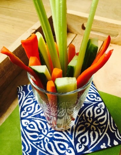 - Eet als tussendoortje in de middag of avond rauwkost; je kunt denken aan worteltjes, snoeptomaatjes of stukje komkommer. Eventueel met een dip. De rauwkost geserveerd in reepjes (winterpeen, paprika, selderij), rechtopstaand in een mooi glas met de dressing onderin ziet het er prachtig uit en is handig om te eten.