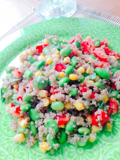 200 gram edamebonen (sojabonen) (uit blik of uit de koeling)150 gram (volkoren)quinoa