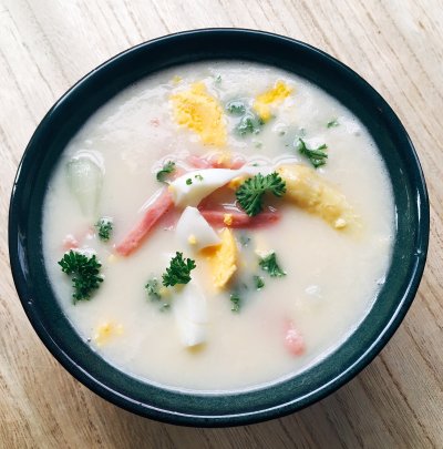 Aspergesoep met hamreepjes