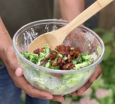 400 gram broccoli100 gram (biologisch) ontbijtspek (plakjes) of vega speckjes