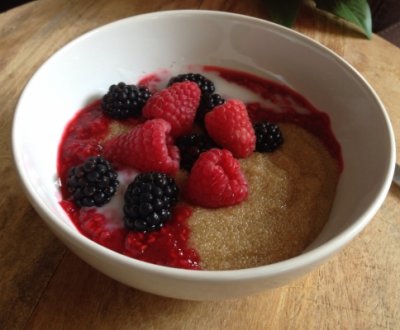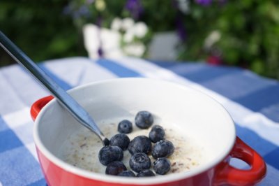 Havermoutpap met blauwe bessen, gebroken lijnzaad en kaneel (ontbijt)