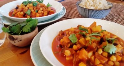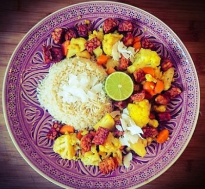 Bloemkool en wortel in een gember-kerrie-kokos sausje (vegan)