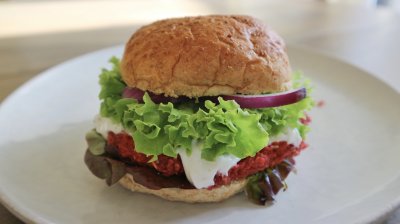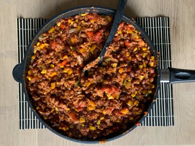 Gevulde aubergine met kruidig vega-gehakt en paddestoelen
