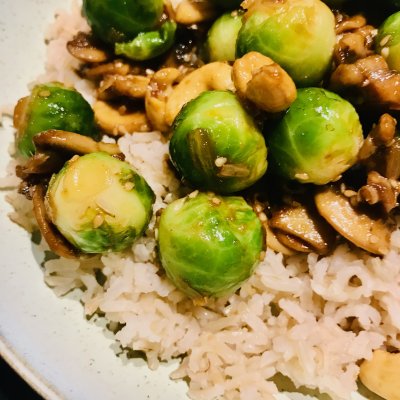 Aziatische spruitjes met champignons en cashewnoten
