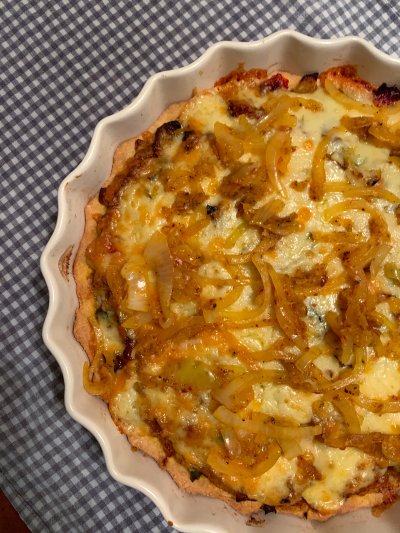 Uientaart met volkorenbodem