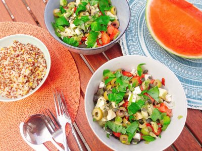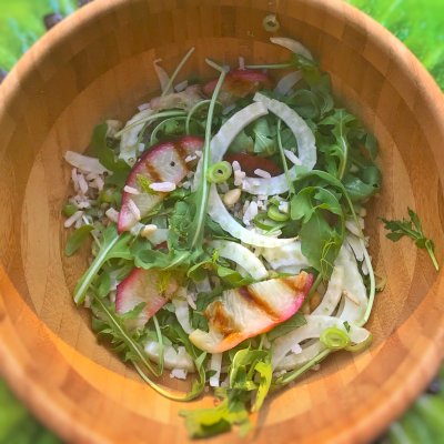 Maaltijdsalade met rijst, venkel en gegrilde nectarine