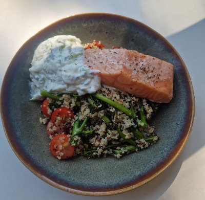 Quinoasalade met zalm en tzatziki