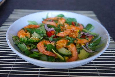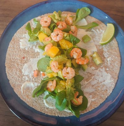 Volkorenwrap met garnalen, mango en avocado