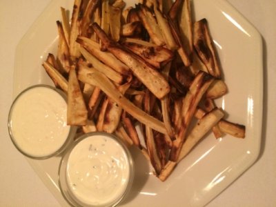 Snijd de pastinaak doormidden en snijd er ‘frietjes’ van.