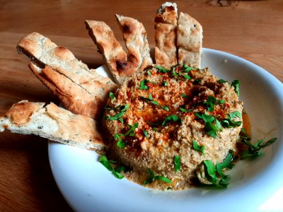 Verwarm de oven voor op 200 graden. Snij de bloemkool in roosjes en besprenkel de roosjes met een beetje olijfolie, peper en zout. Rooster de bloemkool 15 a 20 minuten in de oven totdat het gaar is en een kleurtje begint te krijgen. Laat de bloemkool vervolgens afkoelen. Plaats de geroosterd bloemkool en gepeste tenen knoflook in een blender/keukenmachine/ hakmolen. Doe komijnpoeder erbij en pureer de ingrediënten. Voeg vervolgens de olijfolie, citroensap en tahin toe totdat je de gewenste textuur krijgt. Indien nodig breng de mengsel verder op smaak met wat meer peper. Strooi er voor serveren wat paprikapoeder en peterselie en een klein scheurtje olijfolie. Serveer het met naanbrood/(volkoren) toast/ (volkoren) stokbrood.