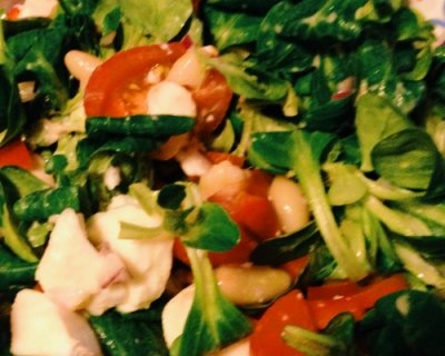 een klein blikje witte canellibonen (130 gram)een zakje veldsla