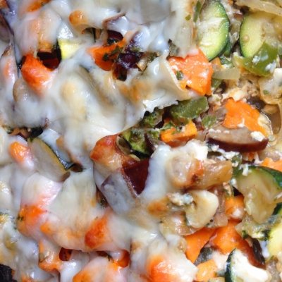 Was de courgetten en aubergine en snijd deze in kleine stukjes. Verwijder de zaadlijsten uit de paprika en was deze van binnen en buiten, snijd deze vervolgens ook in kleine stukjes.