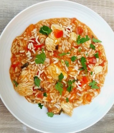 Kip met rijst in kruidige tomaten-kokos saus