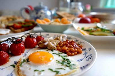 Rooster het brood. Verhit een grote koekenpan. Maak de champignons schoon met een keukenpapiertje en snijd deze in vieren. Was en snijd de tomaat in plakjes. Snijd de peterselie fijn. Doe de olie in de koekenpan. Bak de champignons enkele minuten. Breek het ei in de koekenpan en bak deze tot het eiwit is gestold. Verwarm de witten bonen in tomatensaus even in de hete pan. Leg het gebakken ei, de champignon en de tomaat op het bord. Bestrooi met zwarte peper en zout naar smaak. En doe vervolgens de peterselie erop. Serveer met het geroosterde brood.