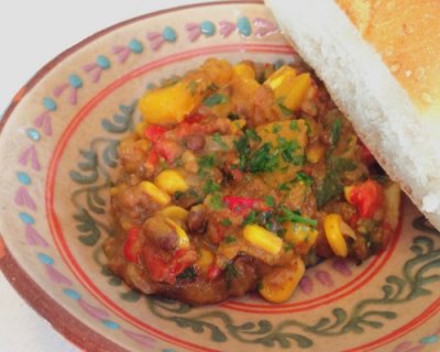 Voeg de linzen en de maïs toe en laat deze nog even meepruttelen.