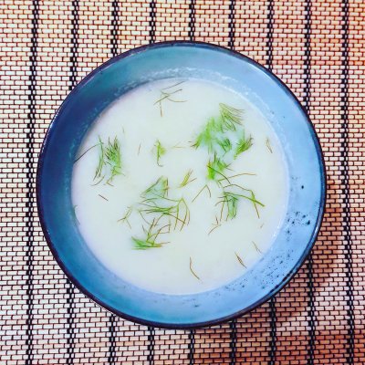 Snipper de uien, maak de venkels schoon, snijdt in grove stukken en bewaar wat venkelgroen ter garnering. Verhit de olie in een grote pan en fruit de ui. Voeg vervolgens de venkels toe en laat even bakken (tot de venkel goudbruine plekken krijgt). Nu kun je de bouillon en plantaardige kookroom toevoegen en het geheel 15 minuten zachtjes koken. Blend de soep met een staafmixer en laat naar wens wat grovere stukken venkel over in de soep. Breng op smaak met peper en serveer in een kom met het venkelgroen.
