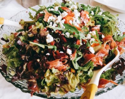 Een zakje gemengde sla (150 gram)1/2 komkommer