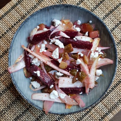 Salade met witlof, biet en geitenkaas