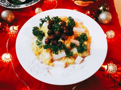 Schorsenerenrisotto met amandelroom, hazelnoten en peterselie