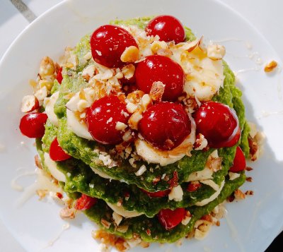 Spinaziepannenkoekjes met fruit en hazelnoten