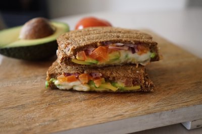 Zet het tosti-apparaat aan en laat warm worden. Was en halveer een tomaat en snijd deze in kleine blokjes. Halveer een avocado, verwijder de schil en snijd in dunne plakjes. Snipper de 1/4 rode ui. Snijd de halve bol mozzarella in dunne plakjes. Beleg 1 snee brood met de avocado, de mozzarella, tomaat, rode ui en betrooi met zwarte peper. Dek af met de andere boterham en snijd door. Bak ca. 5 minuten in het tosti-apparaat.
