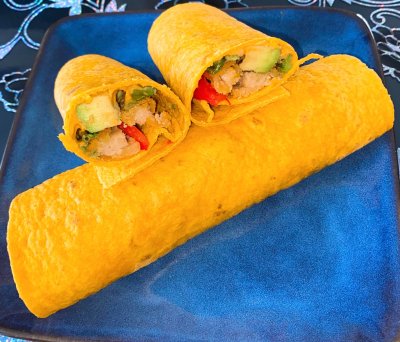 Bak de schnitzels in de airfryer (ca. 8 min) of in een pan met olijfolie goudbruin. Snijd de halve paprika in reepjes. Maak de guacamole: prak de avocado’s en snijd de ui, knoflook en koriander in kleine stukjes. Mix alles in een kom en voeg limoensap en lijnzaad toe. Smeer de hummus op de tortilla’s en voeg er eventueel wat sriracha aan toe. Leg de spinazie en de in reepjes gesneden kip op de tortilla's. Smeer de guacamole op de kip en leg de paprikareepjes erop. Let’s roll ‘em up & Bon Appétit!
