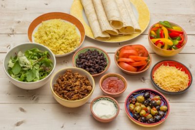 Wraps met humus, olijven, spinazie en gegrilde paprika